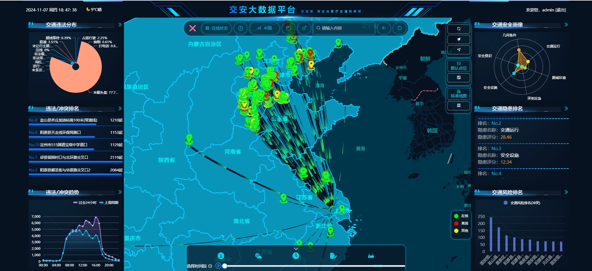基于交安感知ibox的结构化数据,构造六维度70指标的交安数字画像,并实时进行安全风险评价和隐患量化分析。